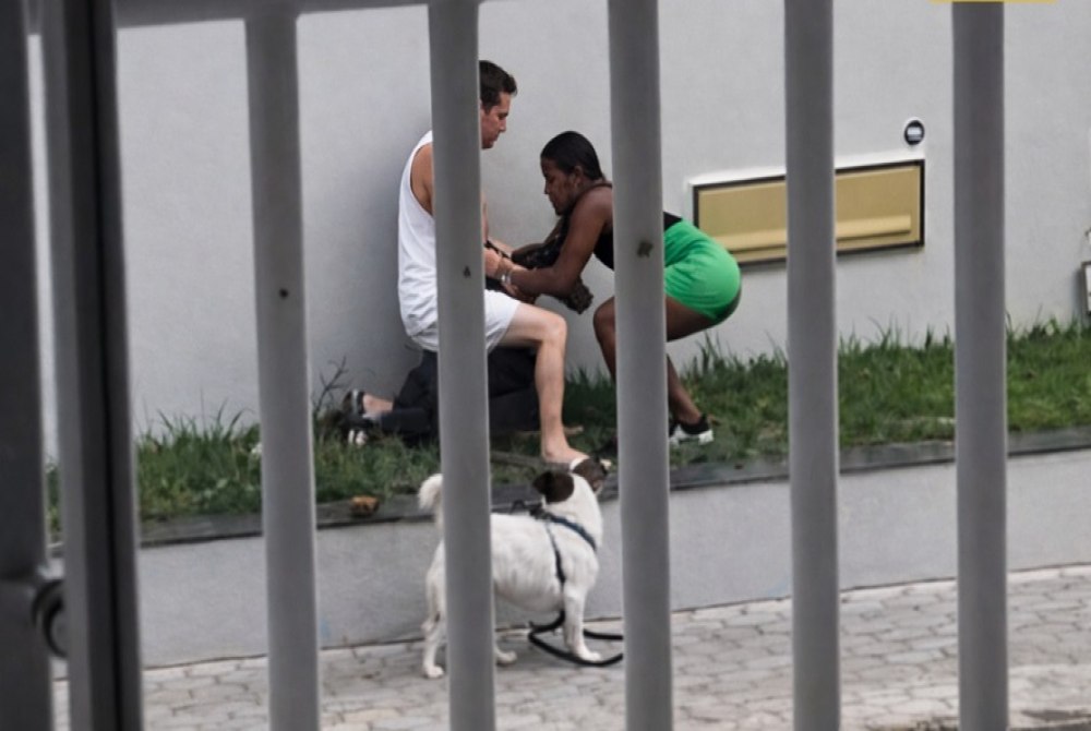 As imagens de videomonitoramento mostram o momento em que o cachorro da mulher se solta da guia e avança em direção ao cão do homem. Na sequência, os dois animais entram em confronto. Enquanto a tutora tenta conter seu cachorro, o suspeito reage de forma violenta, passando a desferir golpes contra o animal e, em meio à confusão, acaba atingindo também a mulher.